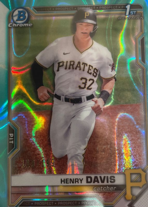 2021 Bowman Draft Henry Davis Chrome Aqua Lava Refractor #182/199 Pirates
