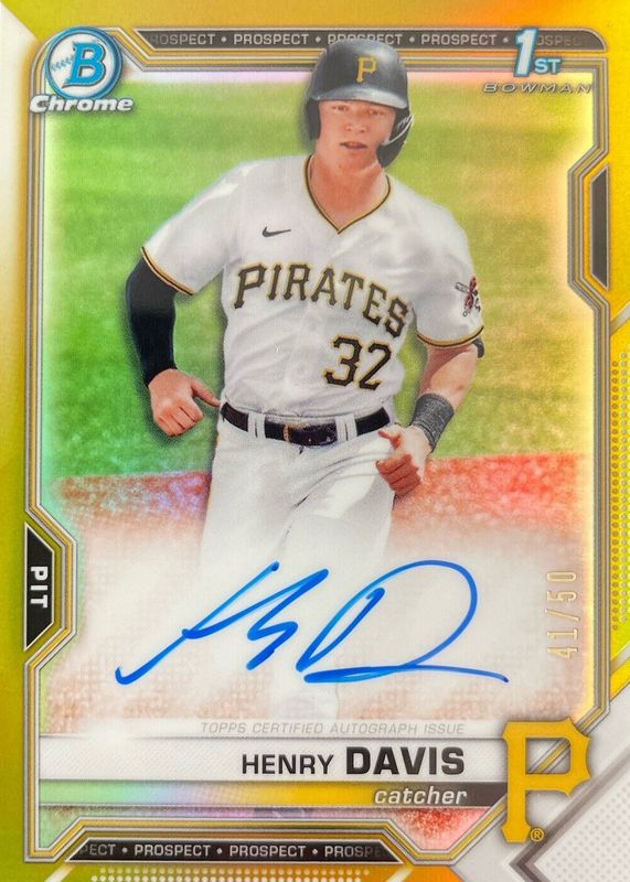 2021 Bowman Chrome HENRY DAVIS /50 Auto Gold Refractor 1st RC Pirates NICE! AP92