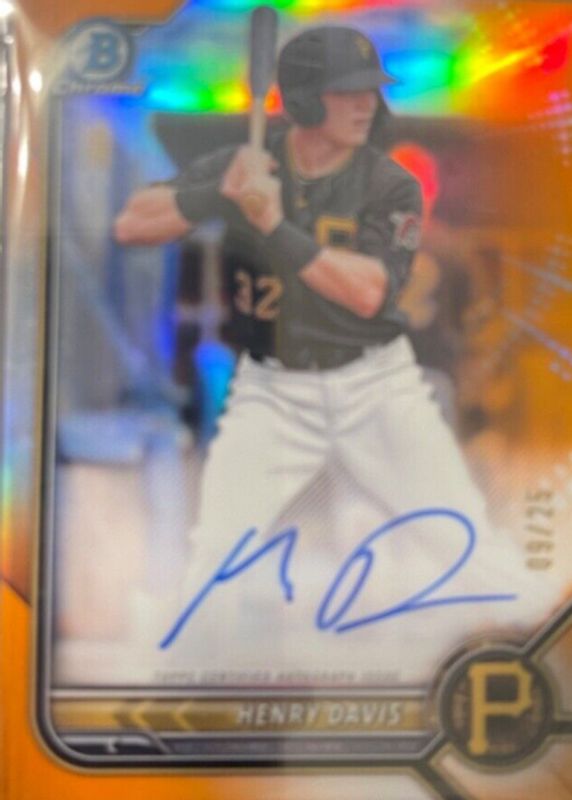 2022 Bowman Chrome Henry Davis Auto RC /25 Orange Refractor Pirates Autograph