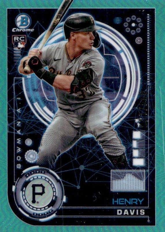 The Henry Davis 2024 Bowman #BAI-2 Bowman AI - Aqua Refractor /125 Rookie card in Raw condition has not changed in price in the last 30 days and was last sold for $1.79 .