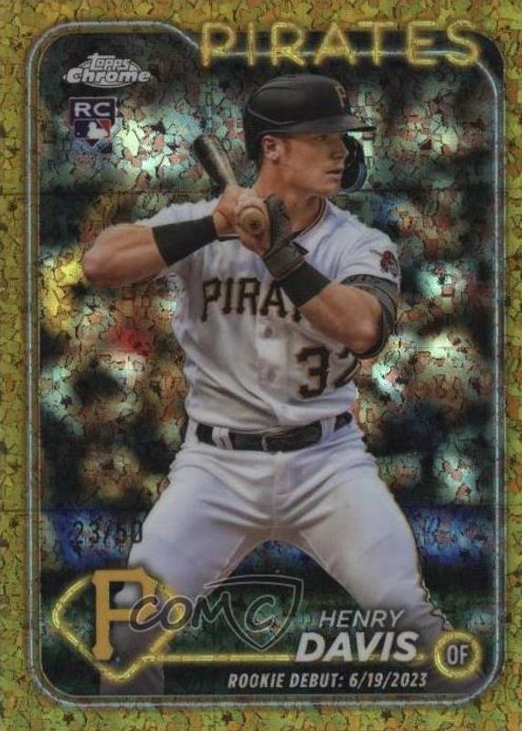 The Henry Davis 2024 Topps Chrome Update #USC128 Rookie Debut - Gold Mini-Diamond Refractor /50 card in Raw condition has not changed in price in the last 30 days and was last sold for $14.49 .