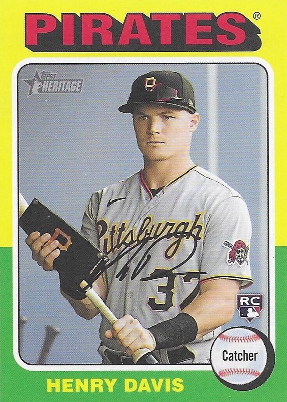 This card is 1 of 19 Henry Davis' card variations in the 2024 Topps Heritage set being tracked by Sports Card Investor, including Base, Black Border, Black & White Image Variation, Flip Stock, and Image Variation.
