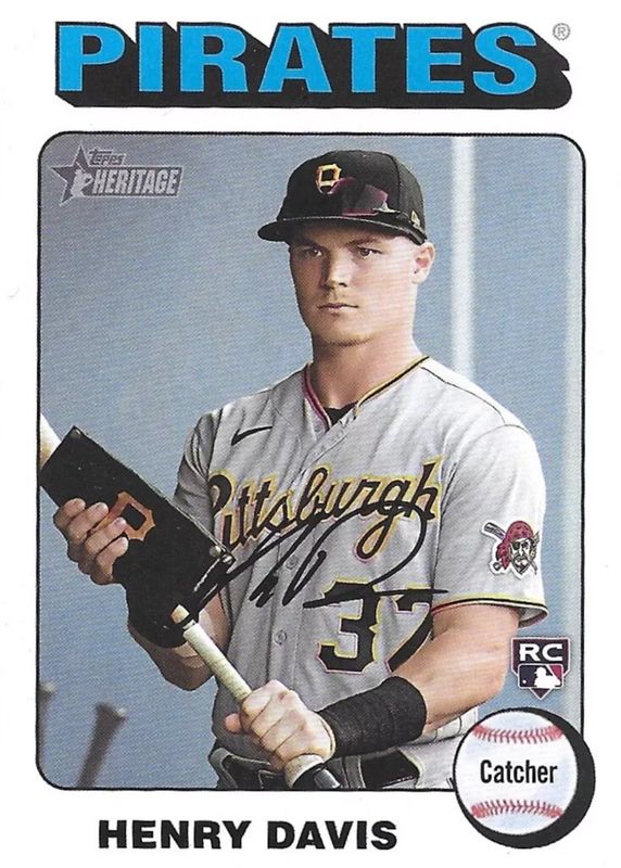 This card is 1 of 19 Henry Davis' card variations in the 2024 Topps Heritage set being tracked by Sports Card Investor, including Base, Black Border, Black & White Image Variation, Color Swap Variation, and Flip Stock.