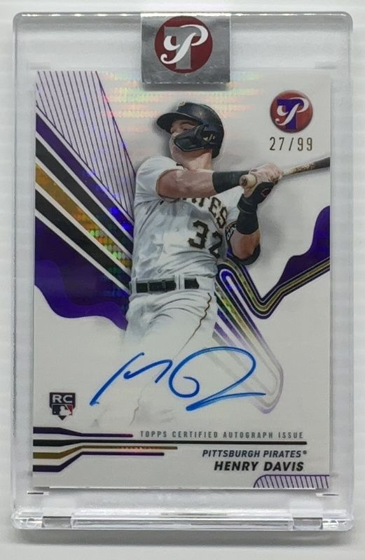 The Henry Davis 2024 Topps Pristine #PA-HD Pristine Autographs - Purple Pristine Refractor /99 Rookie card is 1 of 26 Henry Davis' card variations in the 2024 Topps Pristine set being tracked by Sports Card Investor, including Base, Pristine Refractor, Refractor, Green Refractor /150, and Pristine Purple Refractor /99.