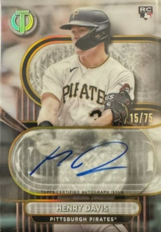 The Henry Davis 2024 Topps Tribute #TA-DAV Tribute Autographs - Gold /75 Rookie card is 1 of 19 Henry Davis' card variations in the 2024 Topps Tribute set being tracked by Sports Card Investor, including Base, Green /99, Gold /75, Purple /50, and Orange /25.