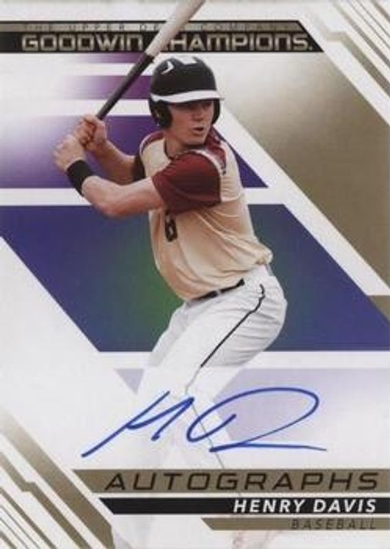 The Henry Davis 2022 Upper Deck Goodwin Champions #A-HD Autographs card is 1 of 107 Henry Davis' card variations in the 2022 Upper Deck Goodwin Champions set being tracked by Sports Card Investor, including #105 Base, #77 Base, #17 Base, Blank Back, and #17 Gold.