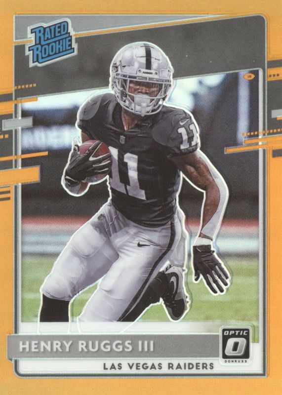 The Henry Ruggs III 2020 Optic #158 Orange /199 Rookie card in Raw condition has not changed in price in the last 30 days and was last sold for $3.99 .