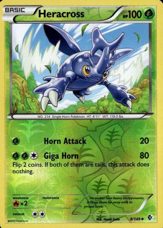 Heracross 2012 Black & White: Boundaries Crossed #008/149 Reverse Holo RAW TCG (LIGHTLY PLAYED) Price Guide