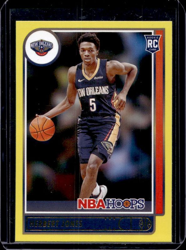 The Herbert Jones 2021 Hoops #243 Yellow Rookie card is 1 of 34 Herbert Jones' card variations in the 2021 Hoops set being tracked by Sports Card Investor, including Base, Anniversary Edition, Blue, Green Ice, and Hyper Blue.
