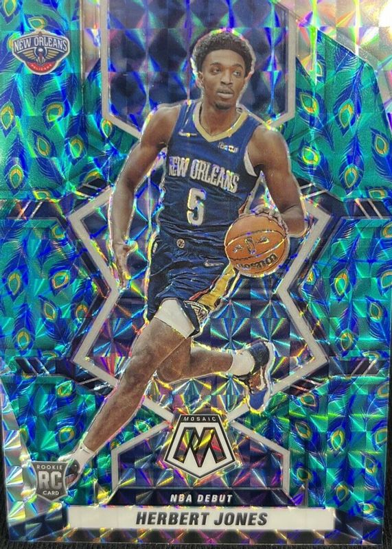 The Herbert Jones 2021 Mosaic #280 NBA Debut - Choice Peacock /(SSP) Rookie card in Raw condition has not changed in price in the last 30 days and was last sold for $30.00 .