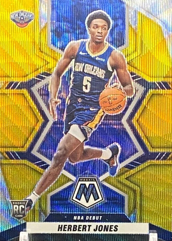 The Herbert Jones 2021 Mosaic #280 NBA Debut - Gold Wave Rookie card in Raw condition has not changed in price in the last 30 days and was last sold for $12.99 .