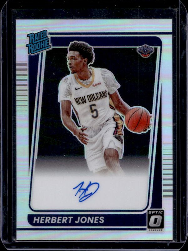 The Herbert Jones 2021 Optic #157 Rated Rookie Signatures - Holo card is 1 of 78 Herbert Jones' card variations in the 2021 Optic set being tracked by Sports Card Investor, including Base, Blue Pulsar, Blue Velocity, Checkerboard, and Choice.