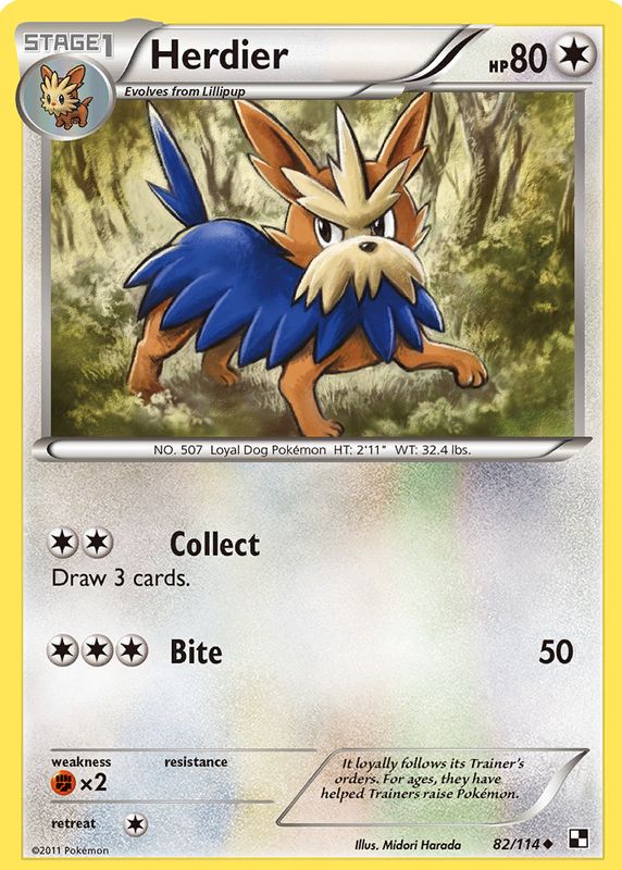 Herdier 2011 Black & White #082/114 Base RAW TCG (NEAR MINT) Price Guide
