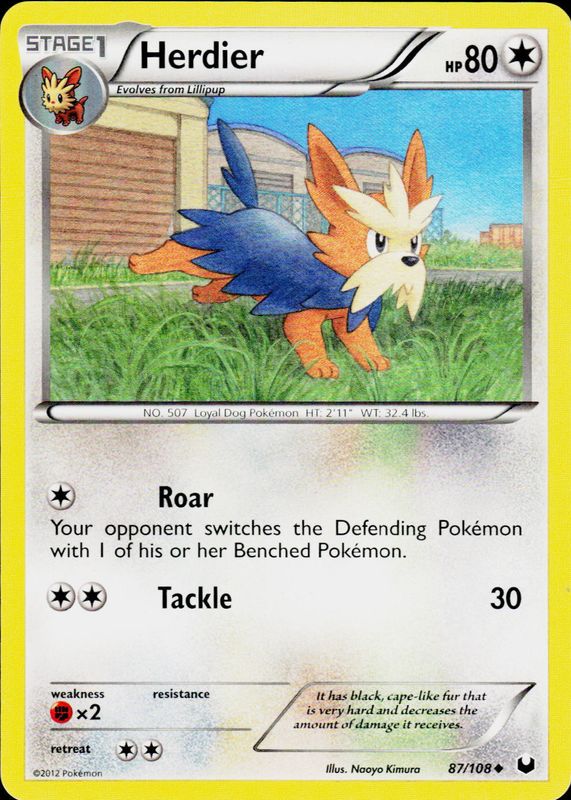 The Herdier 2012 Black & White: Dark Explorers #087/108 Base card in Raw TCG (Near Mint) condition has not changed in price in the last 30 days and was last sold for $1.81 .
