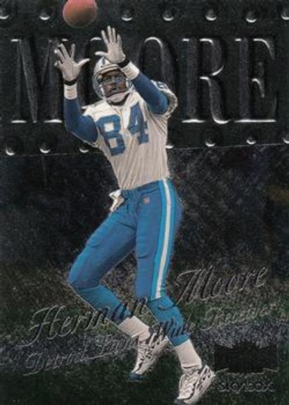 Herman Moore's Football cards are available in at least 82 sets. Herman Moore's biggest 7-day price movers are 1999 Metal Universe #129 Base, 1999 Metal Universe #129 Precious Metal Gems /50, and 1999 Metal Universe #129 Precious Metal Gems - Gem Masters /1.