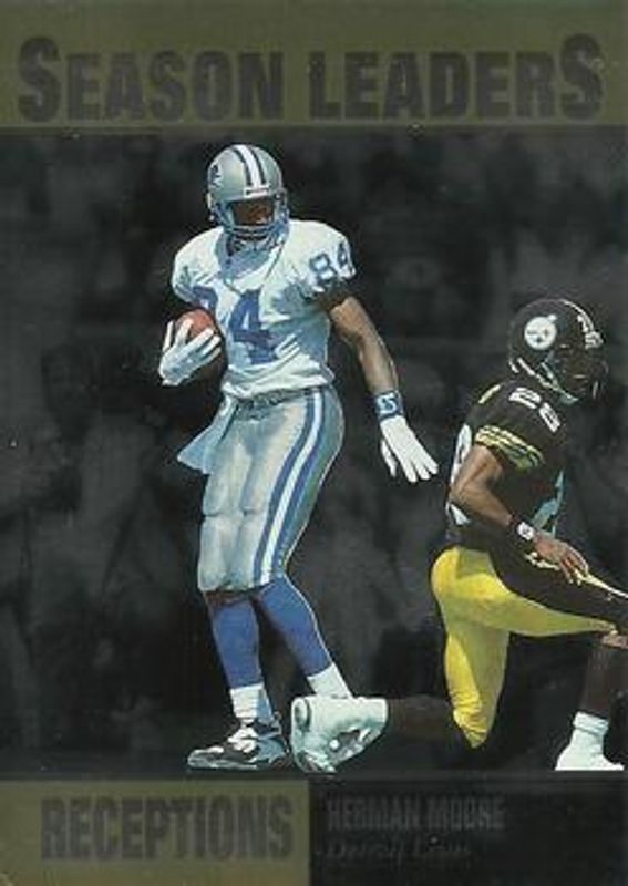 The Herman Moore 1996 Upper Deck Silver Collection #217 Base card is 1 of 3 Herman Moore's card variations in the 1996 Upper Deck Silver Collection set being tracked by Sports Card Investor, including Base, and All NFL Team.