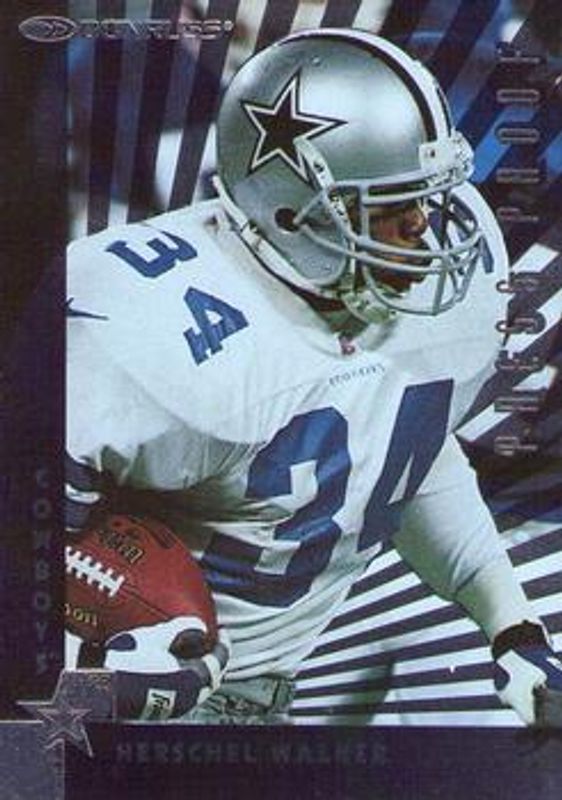 The Herschel Walker 1997 Donruss #184 Press Proof Silver card is 1 of 3 Herschel Walker's card variations in the 1997 Donruss set being tracked by Sports Card Investor, including Base, and Press Proof Gold Die-Cut.