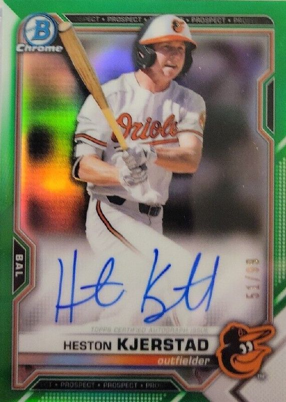 2021 Bowman Heston Kjerstad Chrome Prospect Auto Green Refractor #4/99 Orioles