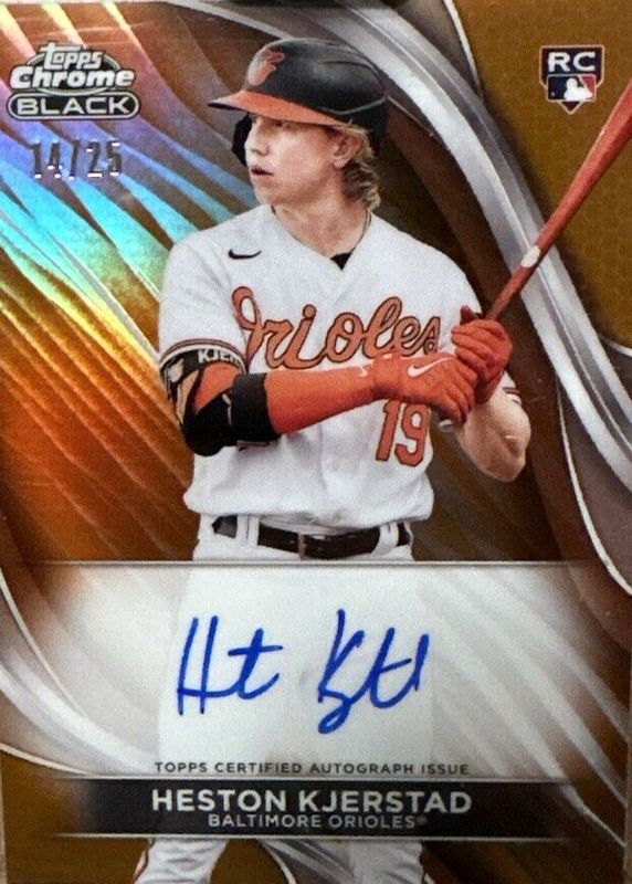 The Heston Kjerstad 2024 Topps Chrome Black #CBA-HKJ Autographs - Orange Refractor /25 Rookie card in Raw condition has not changed in price in the last 30 days and was last sold for $78.00 .