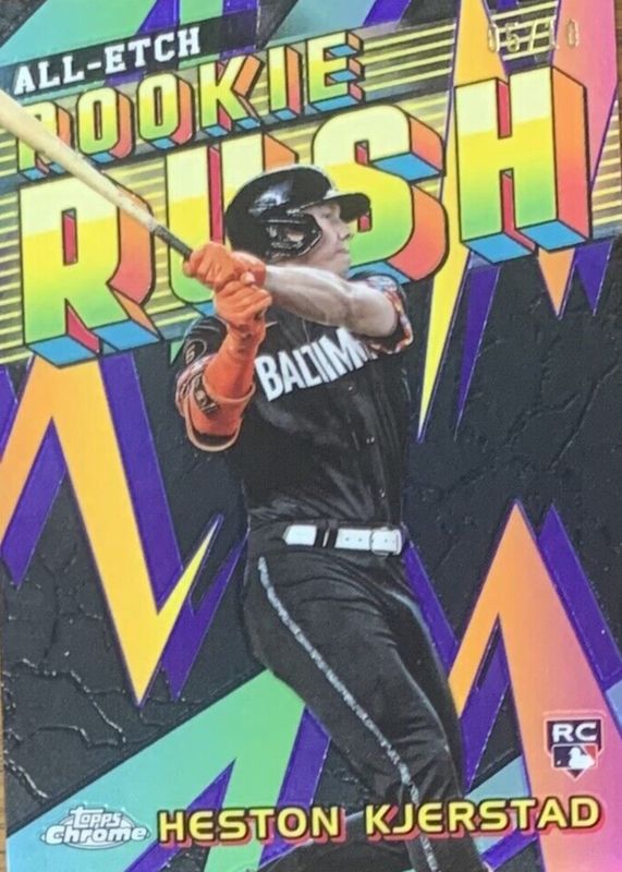 The Heston Kjerstad 2024 Topps Chrome #CERR-15 Chrome All-Etch Rookie Rush - Black Refractor /10 card in Raw condition has not changed in price in the last 30 days and was last sold for $35.00 .