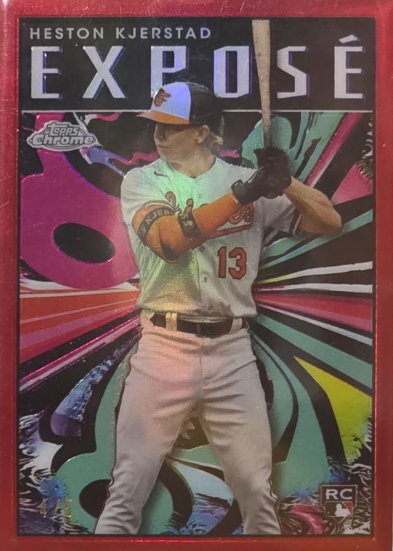 The Heston Kjerstad 2024 Topps Chrome #TCE-25 Expose - Red Refractor /5 Rookie card in Raw condition has not changed in price in the last 30 days and was last sold for $120.00 .