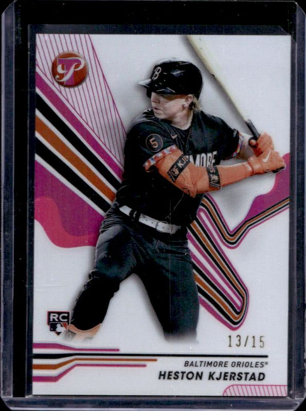 The Heston Kjerstad 2024 Topps Pristine #26 Pink Refractor /15 Rookie card is 1 of 32 Heston Kjerstad's card variations in the 2024 Topps Pristine set being tracked by Sports Card Investor, including Base, Pristine Refractor, Refractor, Green Refractor /150, and Pristine Purple Refractor /99.