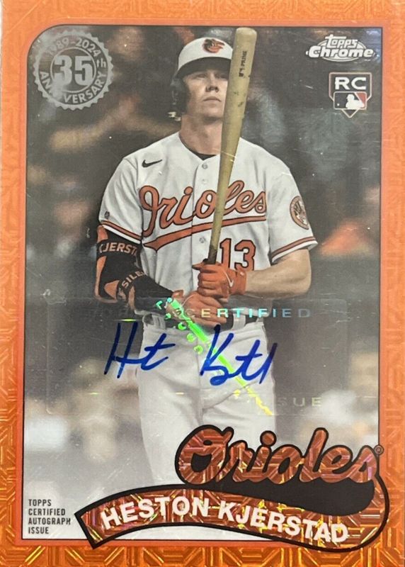 Auctions Ending Soon for Heston Kjerstad 2024 Topps Silver Pack #T89C-79 1989 Chrome Promo Autographs - Orange Refractor (Series 1) /25 Rookie RAW