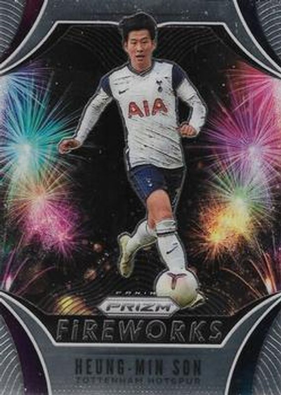 The Heung-Min Son 2020 Prizm Premier League #11 Fireworks card is 1 of 71 Heung-Min Son's card variations in the 2020 Prizm Premier League set being tracked by Sports Card Investor, including Base, Green Mojo, Pink Pulsar, White Sparkle, and Blue Pulsar.