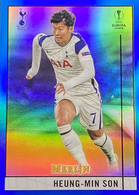 Best Prices Available For Sale of Heung-Min Son 2020 Topps Merlin Chrome UEFA Champions League #44 Blue Refractor /75