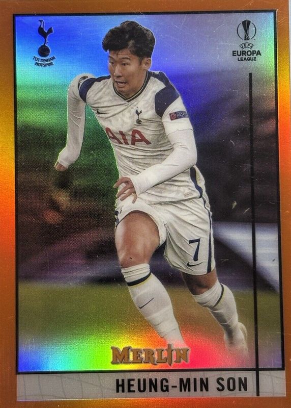 The Heung-Min Son 2020 Topps Merlin Chrome UEFA Champions League #44 Orange Refractor /25 card in Raw condition has not changed in price in the last 30 days and was last sold for $26.51 .