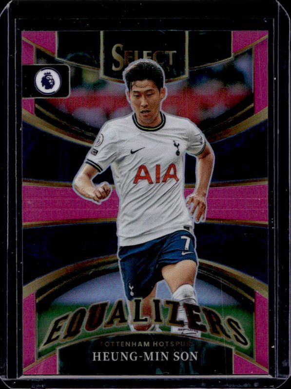 The Heung-Min Son 2022 Select Premier League #18 Equalizers Pink /25 card is 1 of 64 Heung-Min Son's card variations in the 2022 Select Premier League set being tracked by Sports Card Investor, including #144 Base, #226 Base, #226 Blue, #144 Blue, and #226 Checkerboard.