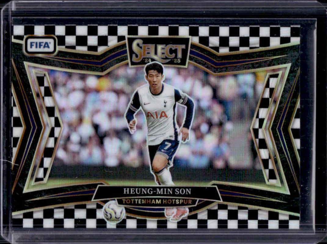 The Heung-Min Son 2024 Select FIFA #219 Field Level Checkerboard card is 1 of 75 Heung-Min Son's card variations in the 2024 Select FIFA set being tracked by Sports Card Investor, including Field Level, Field Level Blue, Field Level Blue Lazer, Field Level Flash, and Field Level Green Ice.