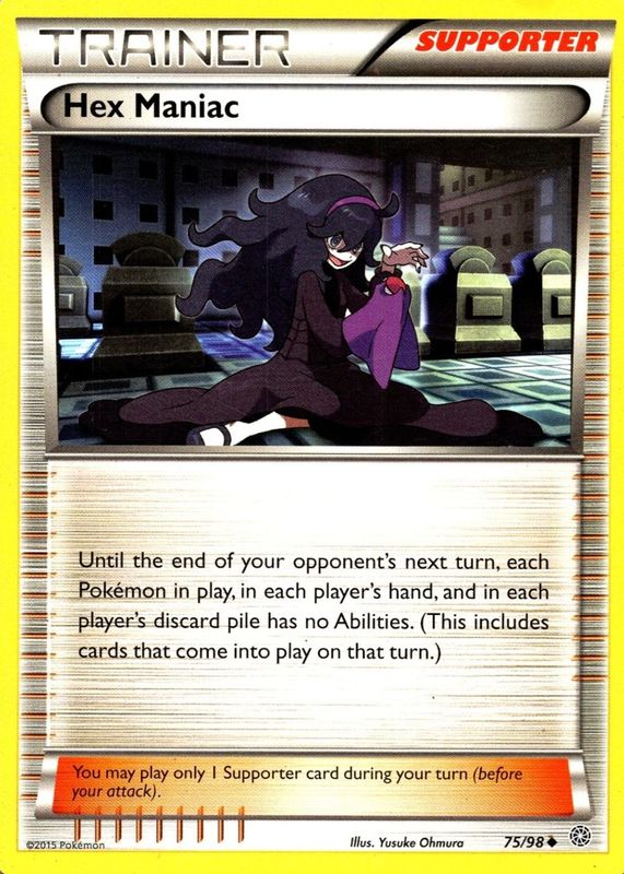 The Hex Maniac 2015 XY: Ancient Origins #75/98 Base card in Raw TCG (Lightly Played) condition has not changed in price in the last 30 days and was last sold for $2.62 .