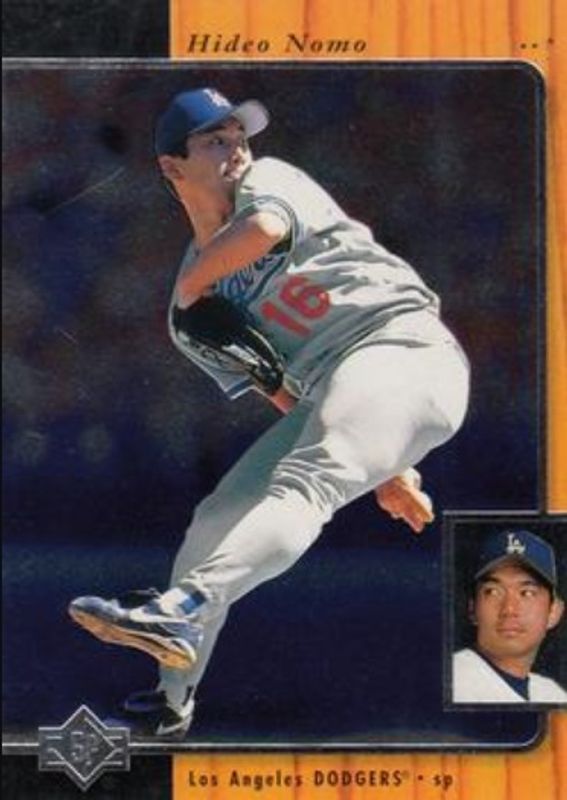 The Hideo Nomo 1996 SP #106 Base card is 1 of 8 Hideo Nomo's card variations in the 1996 SP set being tracked by Sports Card Investor, including Base, Baseball Heroes, Marquee Matchups, Marquee Matchups die-cut, and Marquee Matchups die-cut Promos.