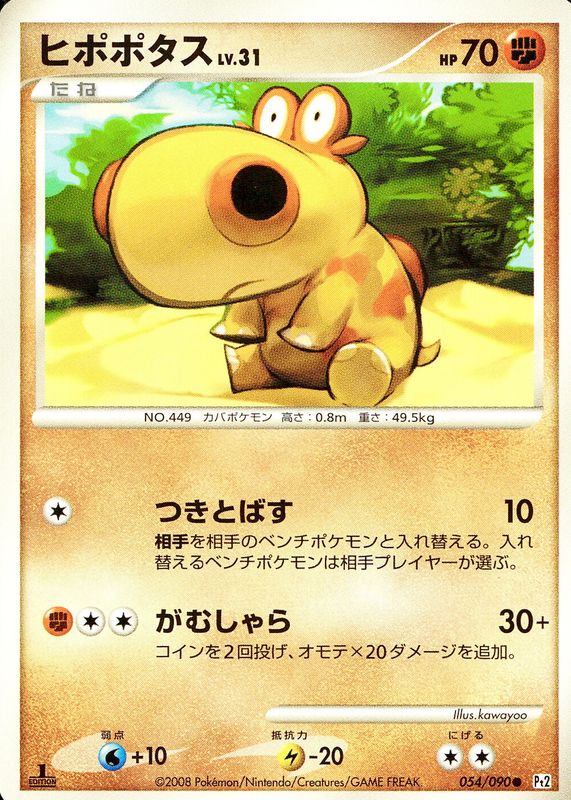 This card is 1 of 2 Hippopotas' card variations in the 2008 Japanese Platinum: Bonds to the End of Time set being tracked by Sports Card Investor, including 1st Edition.