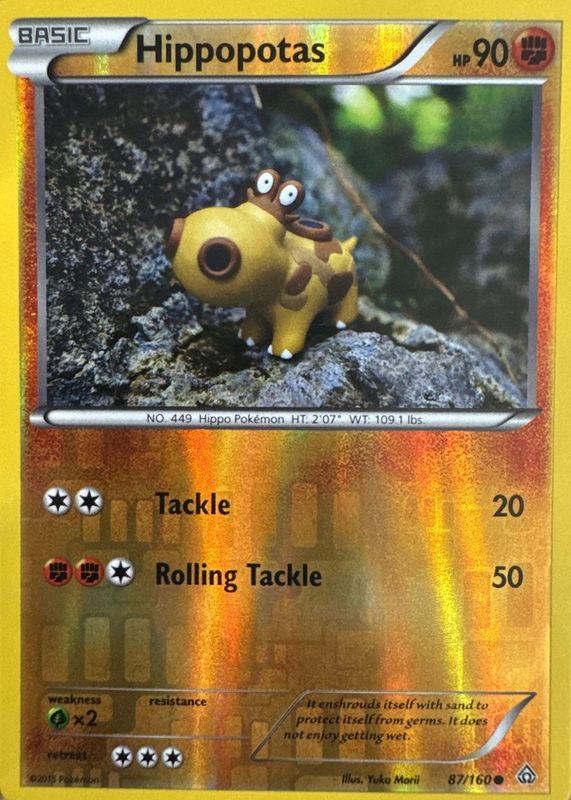 The Hippopotas 2015 XY: Primal Clash #087/160 Reverse Holo card in Raw TCG (Lightly Played) condition has moved down -$1.04 (-34.8%) in the last 30 days and was last sold for $1.95 .