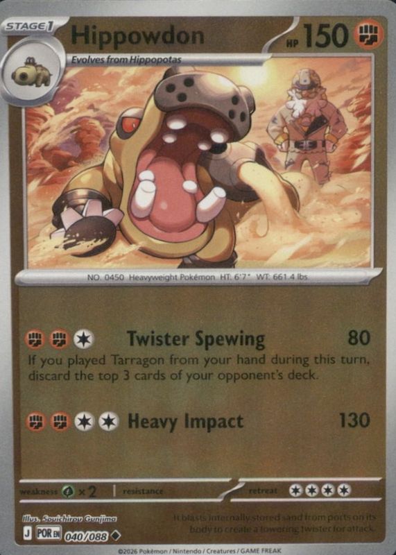 The Hippowdon 2026 Mega Evolution: Perfect Order #40/88 Base card in Raw TCG (Lightly Played) condition has not changed in price in the last 30 days.