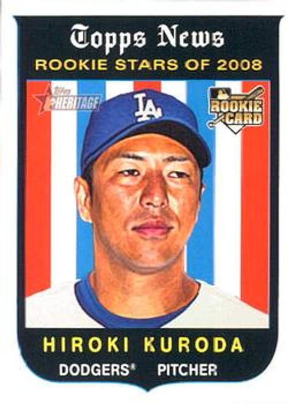 The Hiroki Kuroda 2008 Topps Heritage #524 Base Rookie card is 1 of 5 Hiroki Kuroda's card variations in the 2008 Topps Heritage set being tracked by Sports Card Investor, including Chrome /1959, Chrome Refractor /559, Chrome Refractor Black /59, and Rookie Performers.