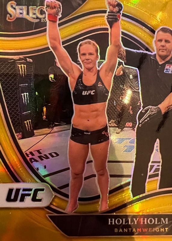 Holly Holm's MMA cards are available in at least 19 sets. Holly Holm's biggest 7-day price movers are 2021 Select UFC #213 Octagonside Gold /10, 2021 Select UFC #54 Concourse Red /99, and 2021 Select UFC #213 Octagonside Black /1.