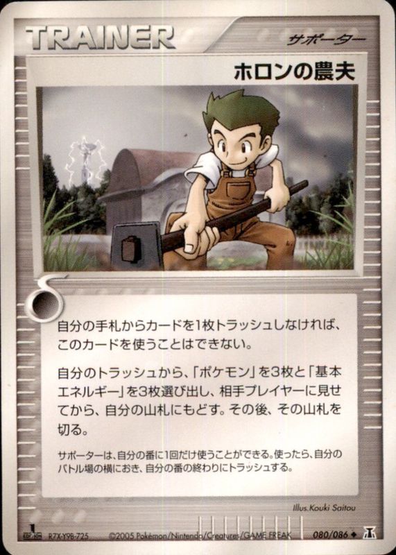 The Holon Farmer 2005 Japanese EX: Holon Research Tower #080/086 1st Edition card in Raw TCG (Near Mint) condition has not changed in price in the last 30 days and was last sold for $4.98 .