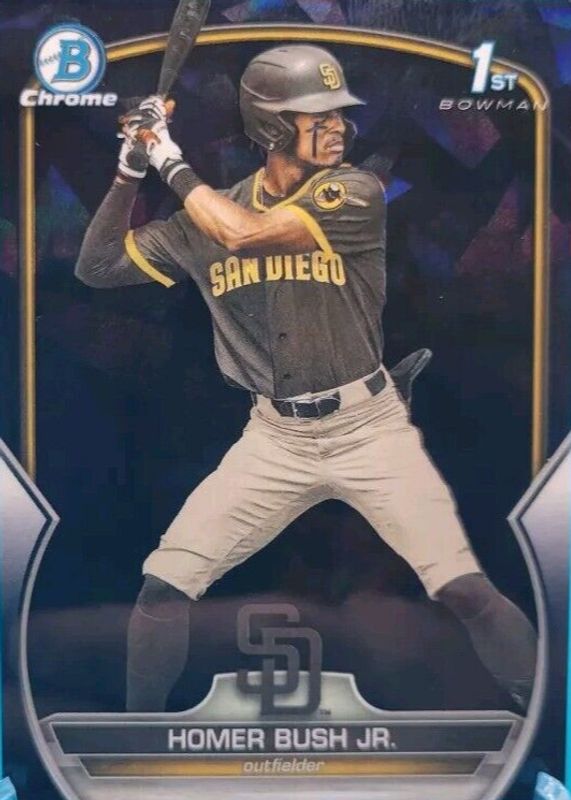 The Homer Bush Jr. 2023 Bowman Draft Sapphire Edition #BDC-124 Chrome - Black /10 (1st) card in Raw condition has not changed in price in the last 30 days and was last sold for $115.00 .