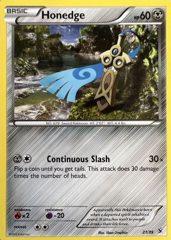 The Honedge 2013 XY: Kalos Starter Set #21/39 Base card in Raw TCG (Near Mint) condition has not changed in price in the last 30 days and was last sold for $0.99 .