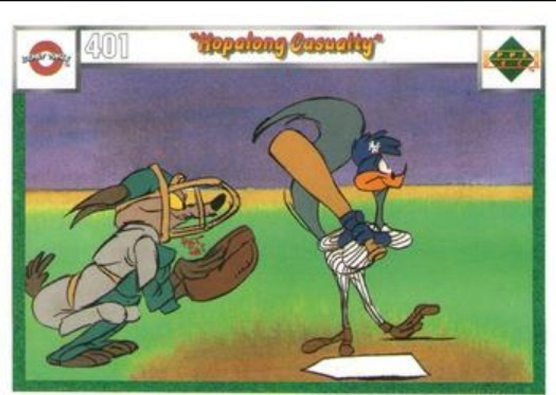 Other popular players in the 1990 Upper Deck Comic Ball set include Magnetic Field, Squeeze Play, Porky Pig and Charlie Dog, Acme Battle, and Curve Ball.