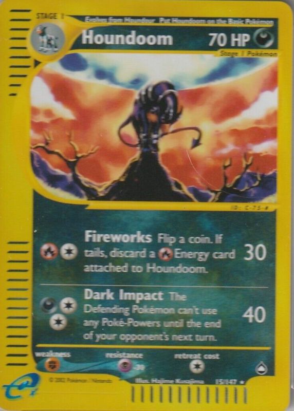 Houndoom 2003 Aquapolis #015/147 Reverse Holo RAW TCG (NEAR MINT) Price Guide