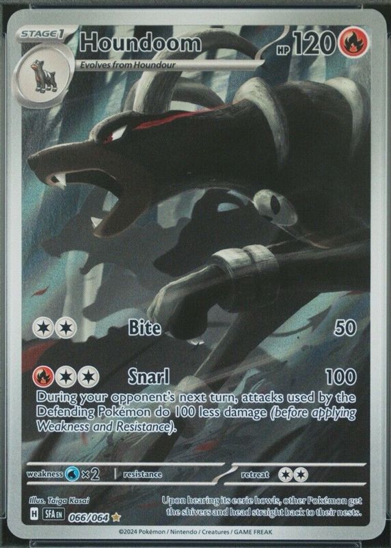 The Houndoom 2024 Scarlet & Violet: Shrouded Fable #066/064 Illustration Rare card in Raw TCG (Near Mint) condition has moved up $0.51 (+1.6%) in the last 30 days and was last sold for $31.50 .