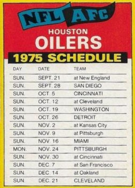 Houston Oilers 1975 Topps Team Checklist RAW Price Guide