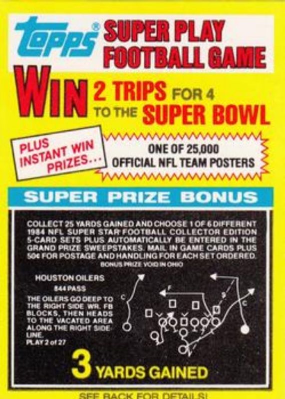 Houston Oilers 1984 Topps #2 Super Play Game Cards RAW Price Guide