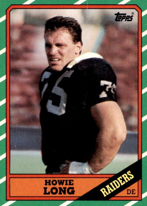The Howie Long 1986 Topps #67 Base card in Raw condition has moved down -$0.26 (-20.8%) in the last 30 days and was last sold for $0.99 .