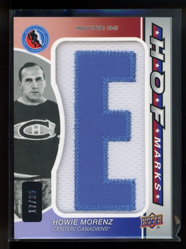 Howie Morenz's Hockey cards are available in at least 10 sets. Howie Morenz's biggest 7-day price movers are 2024 SP Game Used #HOFM-HM HOF Marks /35, 2024 Upper Deck Synergy #L-57 Colorways, and 2024 Upper Deck Synergy #L-57 Colorways - Pink Neon /49.