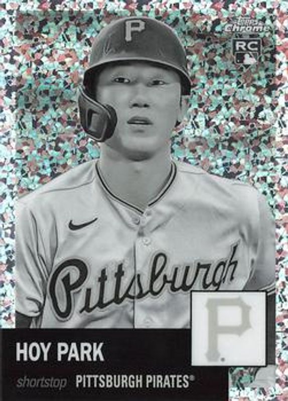 The Hoy Park 2022 Topps Chrome Platinum Anniversary #306 Black & White Mini Diamond Refractor Rookie card is 1 of 45 Hoy Park's card variations in the 2022 Topps Chrome Platinum Anniversary set being tracked by Sports Card Investor, including Base, Blue Prism Refractor, Gold Prism Refractor, Prism Refractor, and Red Prism Refractor.